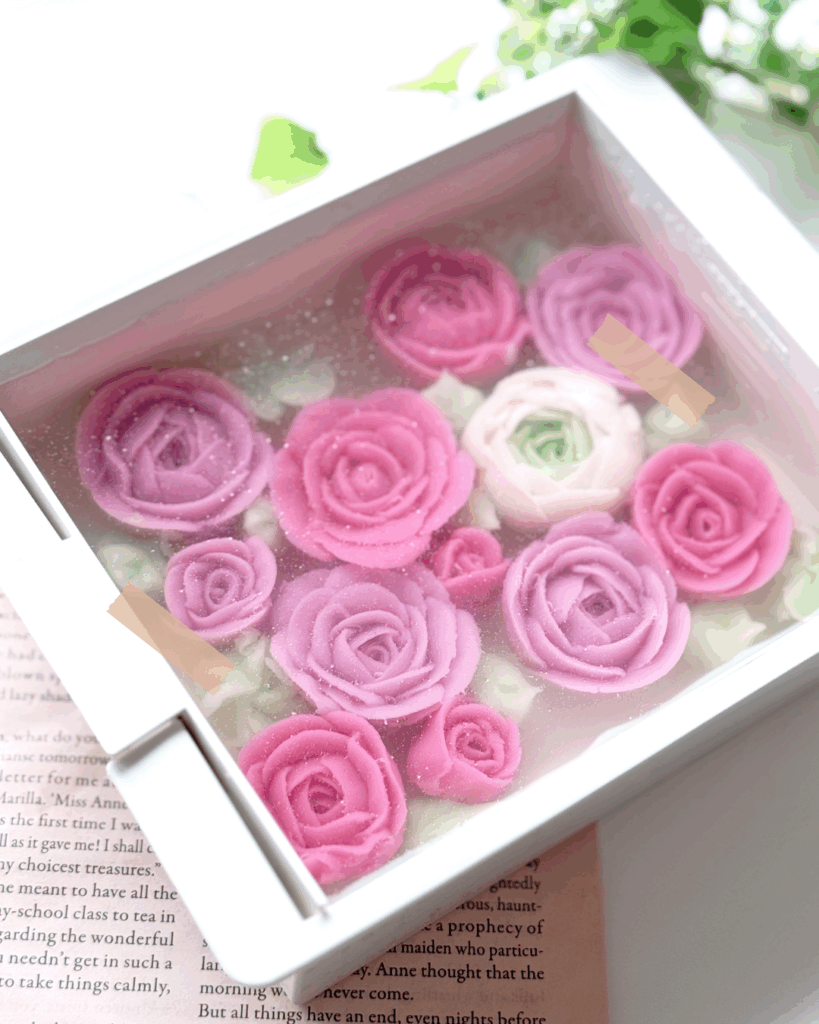 | 内容 | あんをベースにしたぷにぷに質感のクリームを使ってお花を絞り、透明なゼリーに閉じ込めます。 |