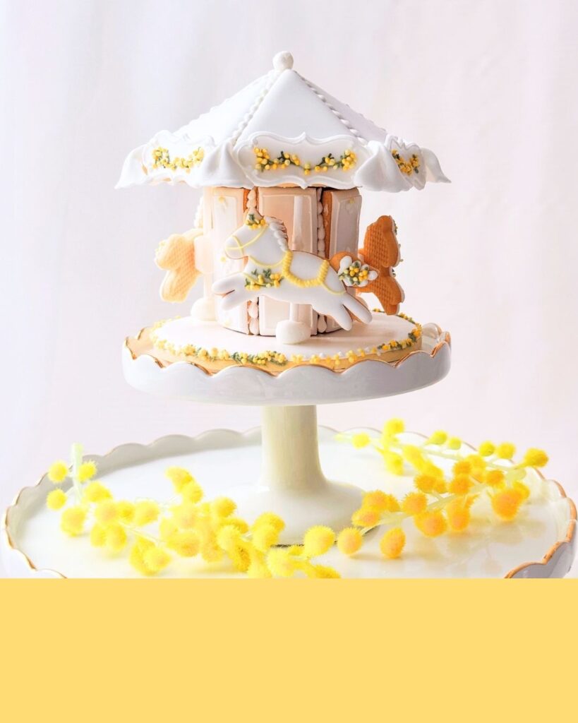 クッキーでメリーゴーランドを再現し、どの角度から見ても楽しめるデザインに仕上げました。